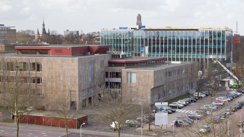 De twee bouwblokken met op de achtergrond de nieuwbouw
