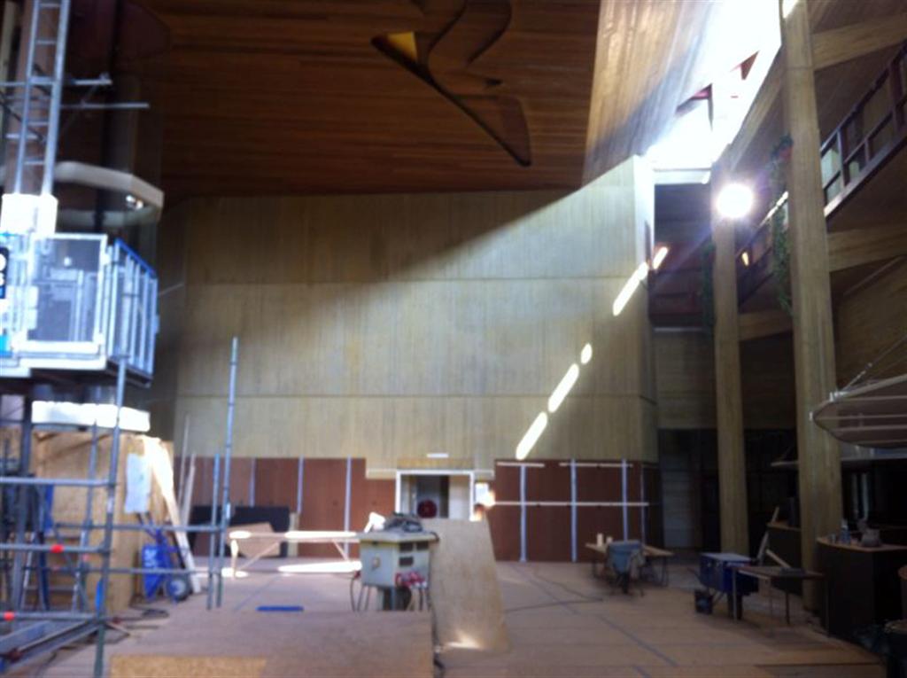Op veel plaatsen in het gebouw is het principe van de gulden snede toegepast. Zo zijn de latten plafonds in de gangen samengesteld uit latten met breedtes van 5, 8, 13 en 21 cm, willekeurig geplaatst. Willekeurig geplaatst betekende echter wel dat alle plafonds geheel door ons zijn uitgetekend om van een willekeurig resultaat verzekerd te zijn.